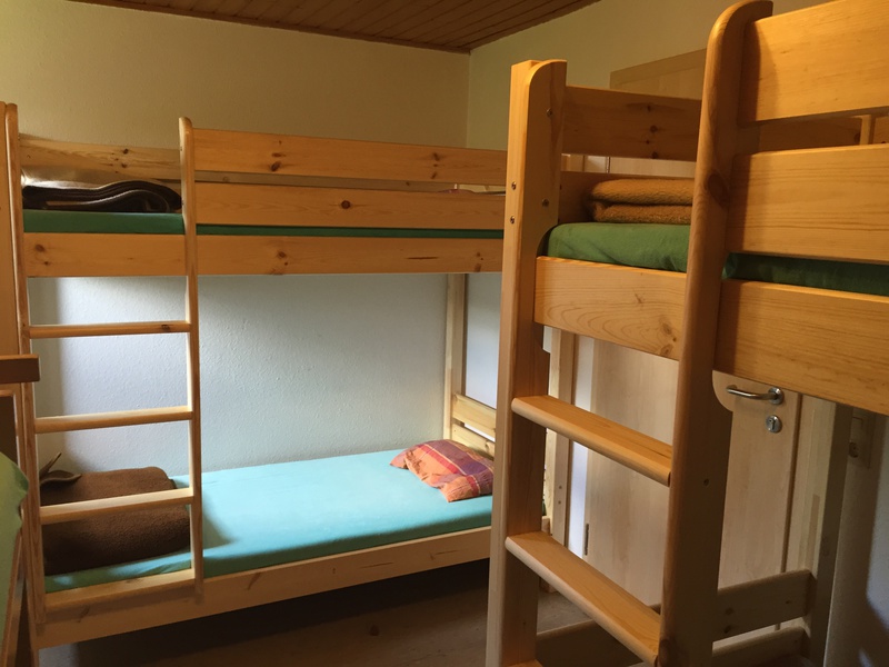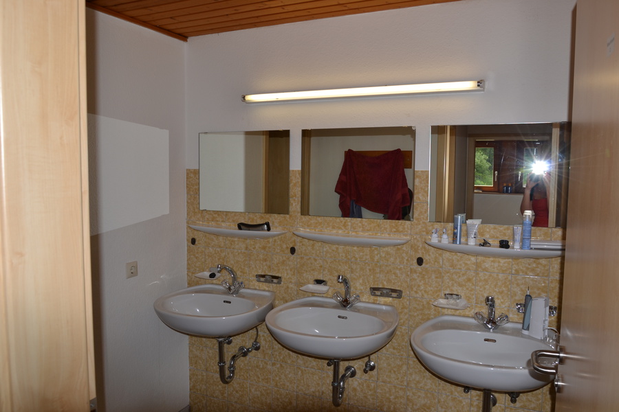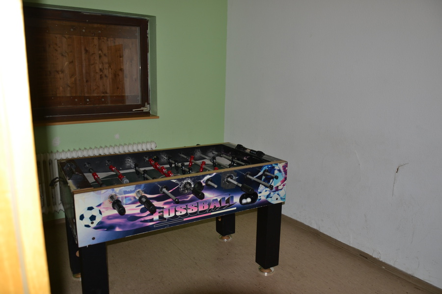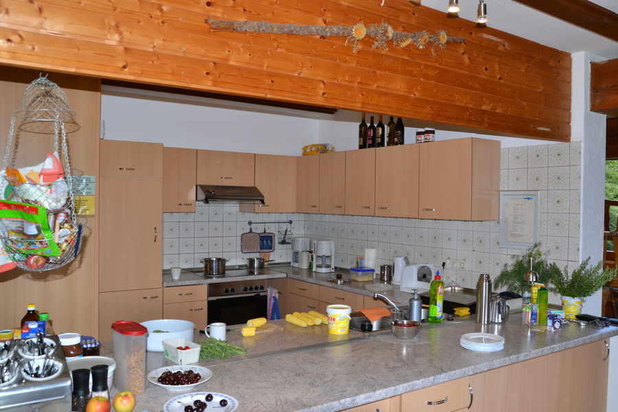 Das Haus bietet bequemen Aufenthalt und Schlafplätze für 30 Personen. Die 5 Schlafzimmer verfügen über 4, 5, 6, 7 und 8 Betten. Zusätzlich sind im Obergeschoss 2 WC's und getrennte Waschräume mit jeweils einer Dusche. Diese werden durch weitere getrennte Toiletten und einen Abstellraum im Erdgeschoss ergänzt. Die offene und voll ausgestattete Küche mit Geschirrspüler, Kühlschrank, Elektroherd und Kaffeemaschine im Erdgeschoss ist durch eine Theke mit dem großzügigen Aufenthaltsraum verbunden. Zusätzlich befindet sich eine weitere Küche mit großem Gasherd, Kühlschrank, Spüle und Arbeitsfläche im Untergeschoß. Somit bietet sich Ihnen die Möglichkeit zur Selbstversorgung. Im Untergeschoss befindet sich ein Kicker. Damit steht einem Tischfussballturnier nichts mehr im Weg. Des weiteren gibt es dort einen zusätzlichen Ausgang zur Terrasse und zum Grillplatz.