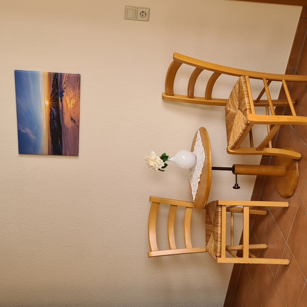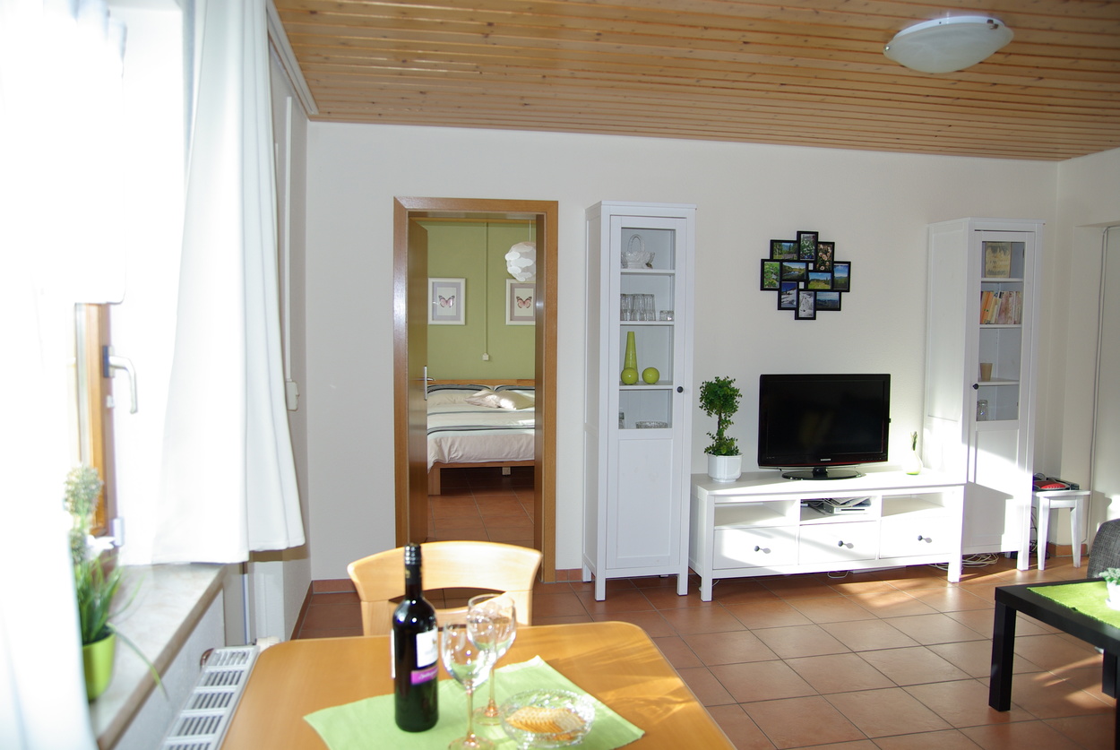 In unserem Haus erwartet Sie eine gemütliche Ferienwohnung im Parterre mit separatem Eingang und Fußbodenheizung für 2 Personen (auf Anfrage auch mit einem Kleinkind möglich, Zustellbett vorhanden). Ein Wohnzimmer mit Schlafcouch, sowie abgetrennter Kochecke, ein Schlafzimmer mit Doppelbett (160cm zwei Matratzen) und ein Duschbad.