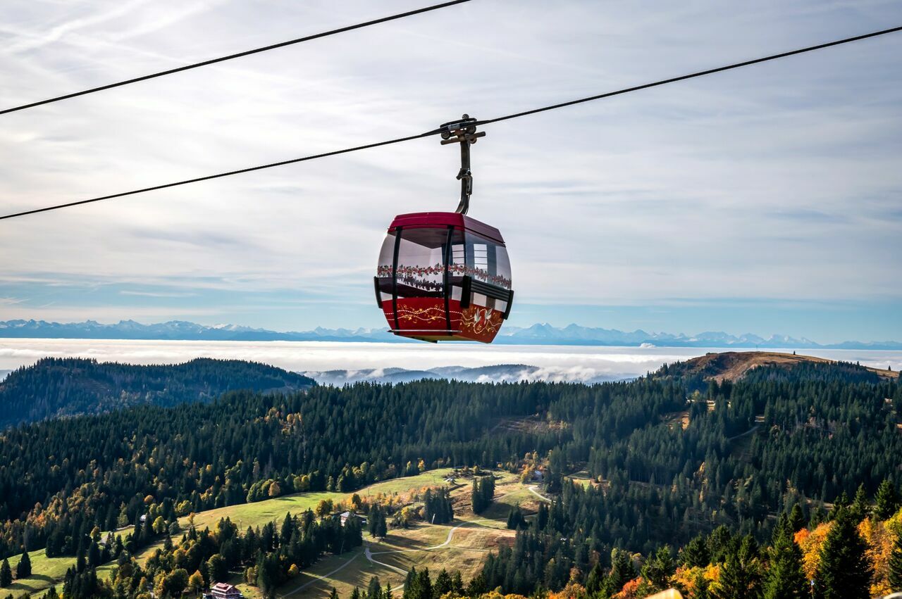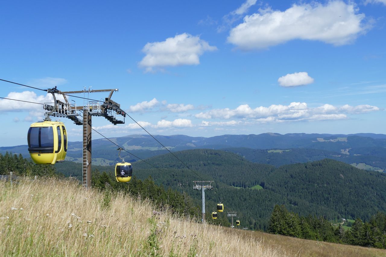 Der majestätische Belchen (1414 m) ist der schönste Berg im Schwarzwald und bietet bei gutem Wetter eine atemberaubende Fernsicht. Von der Schweizer Alpenkette im Süden schweift der Blick über das Wiesental, die Rheinebene und Freiburg hinüber zum benachbarten Feldberg. Wer den Berg nicht erwandern will, kann seit 2001 ganz gemütlich mit der Belchenbahn hinauf in Richtung Gipfel schweben. Mit einer Fahrgeschwindigkeit von 5 m/s erreichen Sie in nur vier Fahrminuten die Bergstation der Belchen Seilbahn, die sich direkt neben dem Belchenhaus befindet. Im Nu sind die 263 m Höhenunterschied von der Talstation (1.100 m) bis an die Bergstation (1.363 m) überwunden.